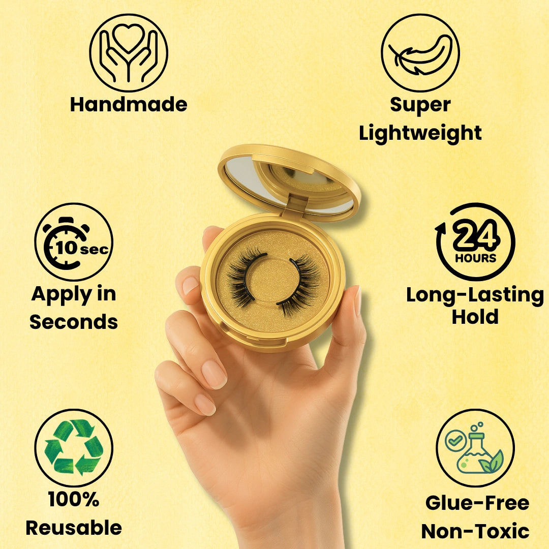 Gracias a su tecnología de imanes duales, las pestañas se anclan entre sí, atrapando suavemente tus pestañas naturales para una sujeción segura y cómoda.