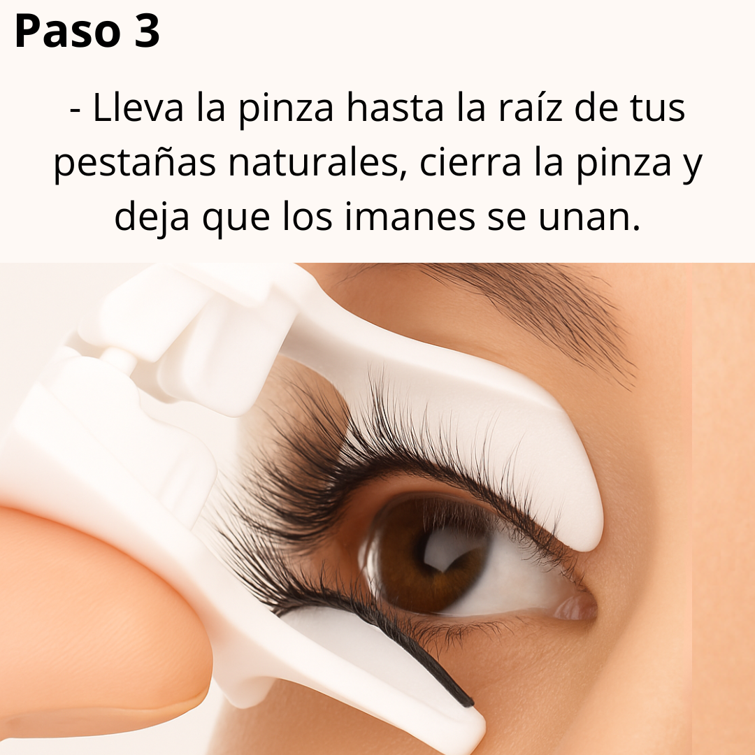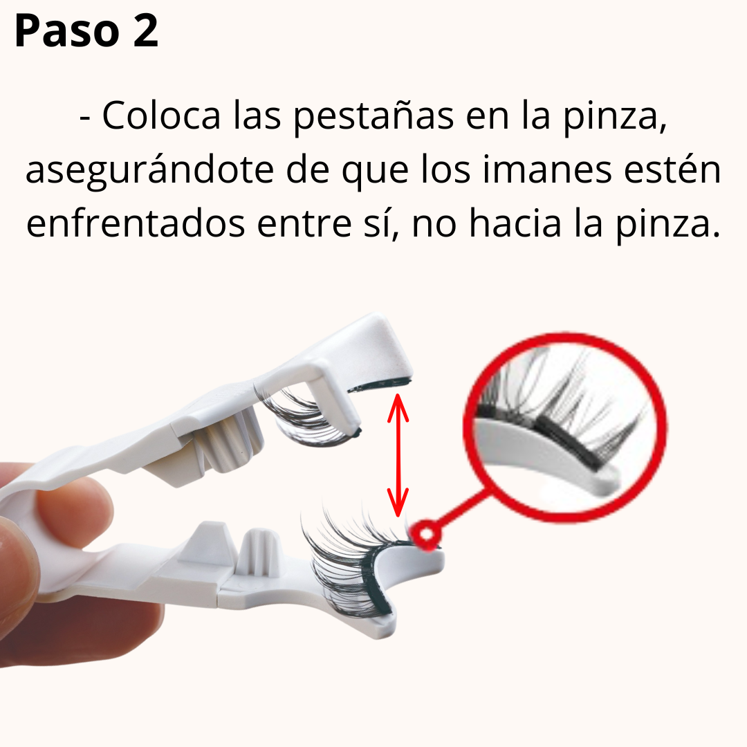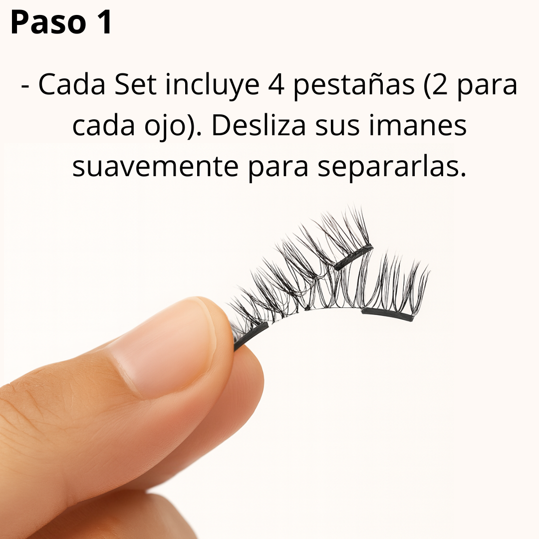 Para quitarlas, no tires directamente de las pestañas. Simplemente desliza suavemente los imanes hacia los lados hasta que se separen; de este modo saldrán sin problemas y sin causar daño.